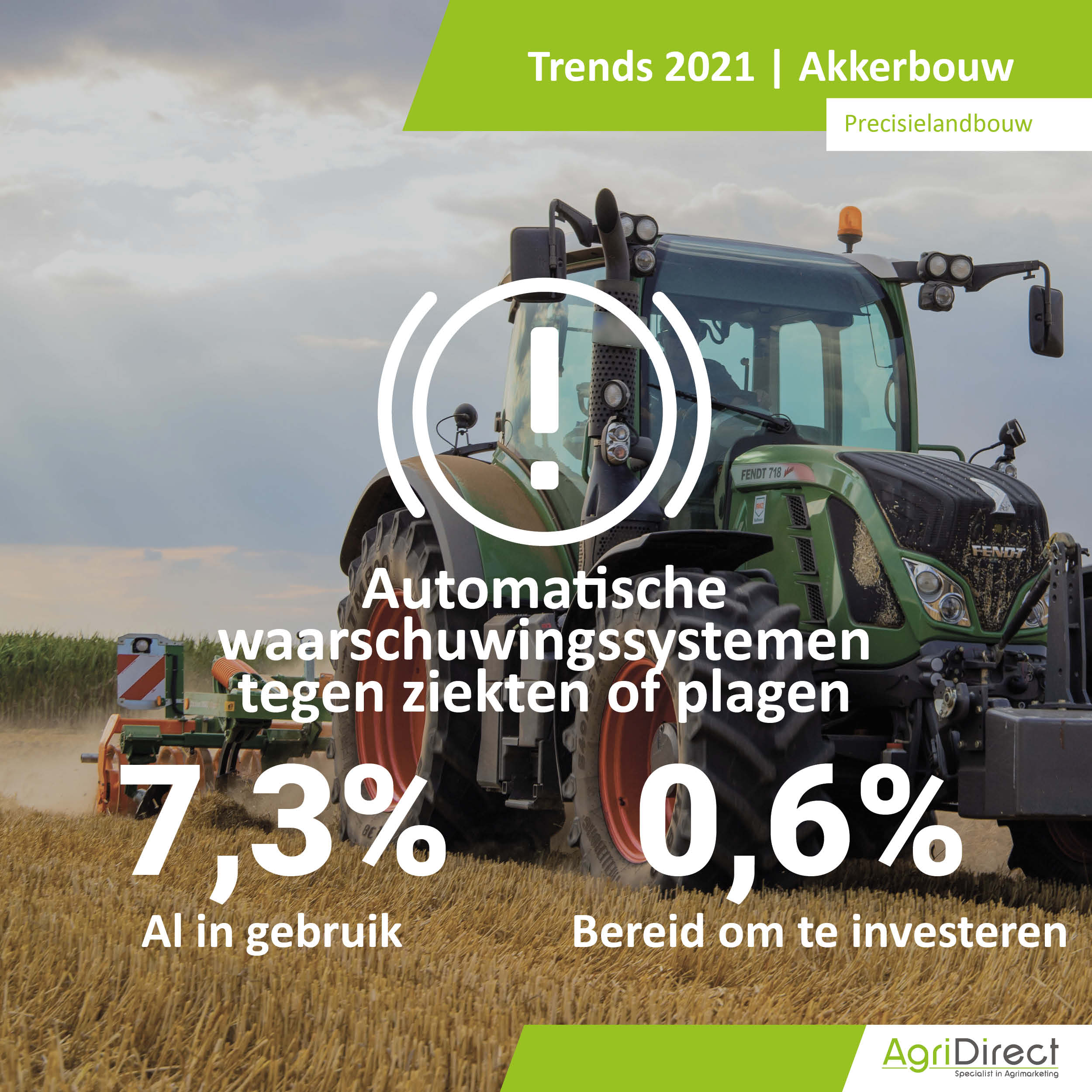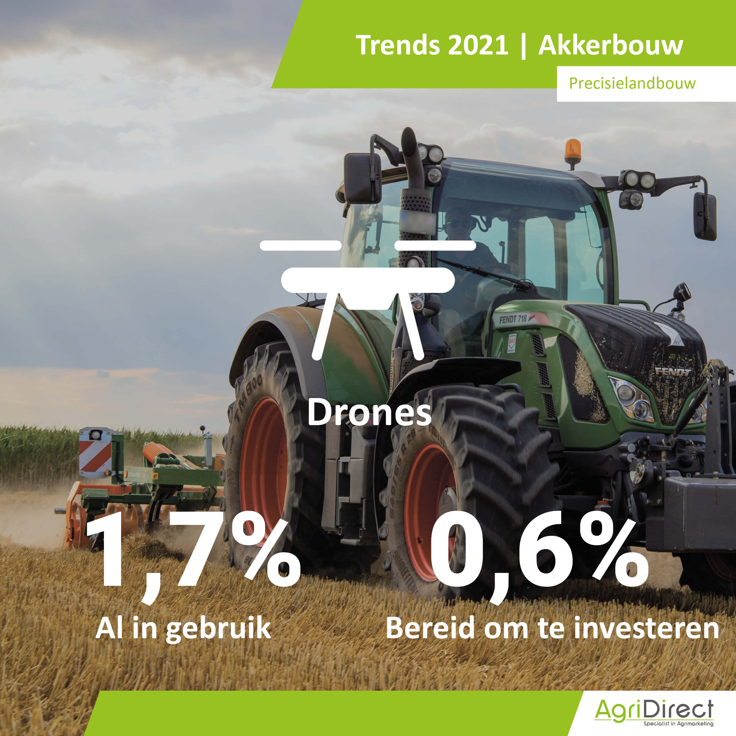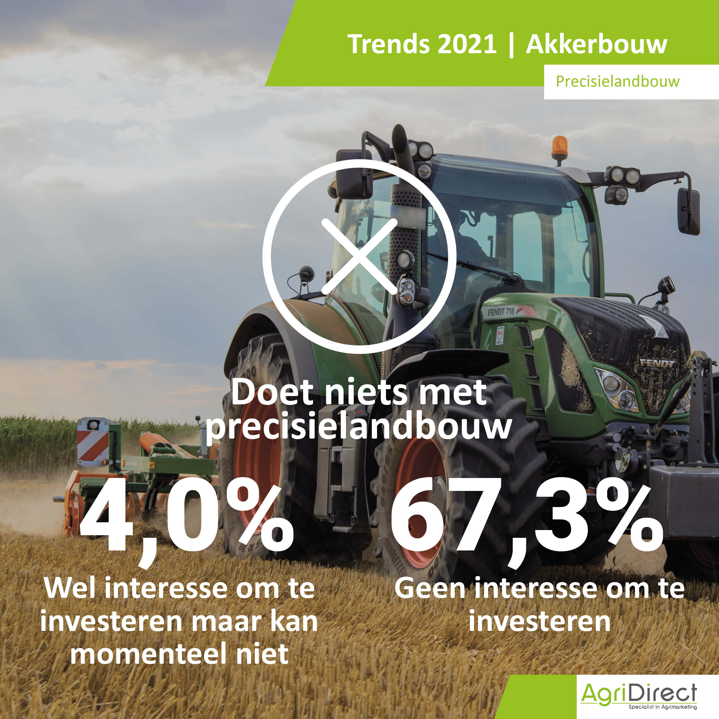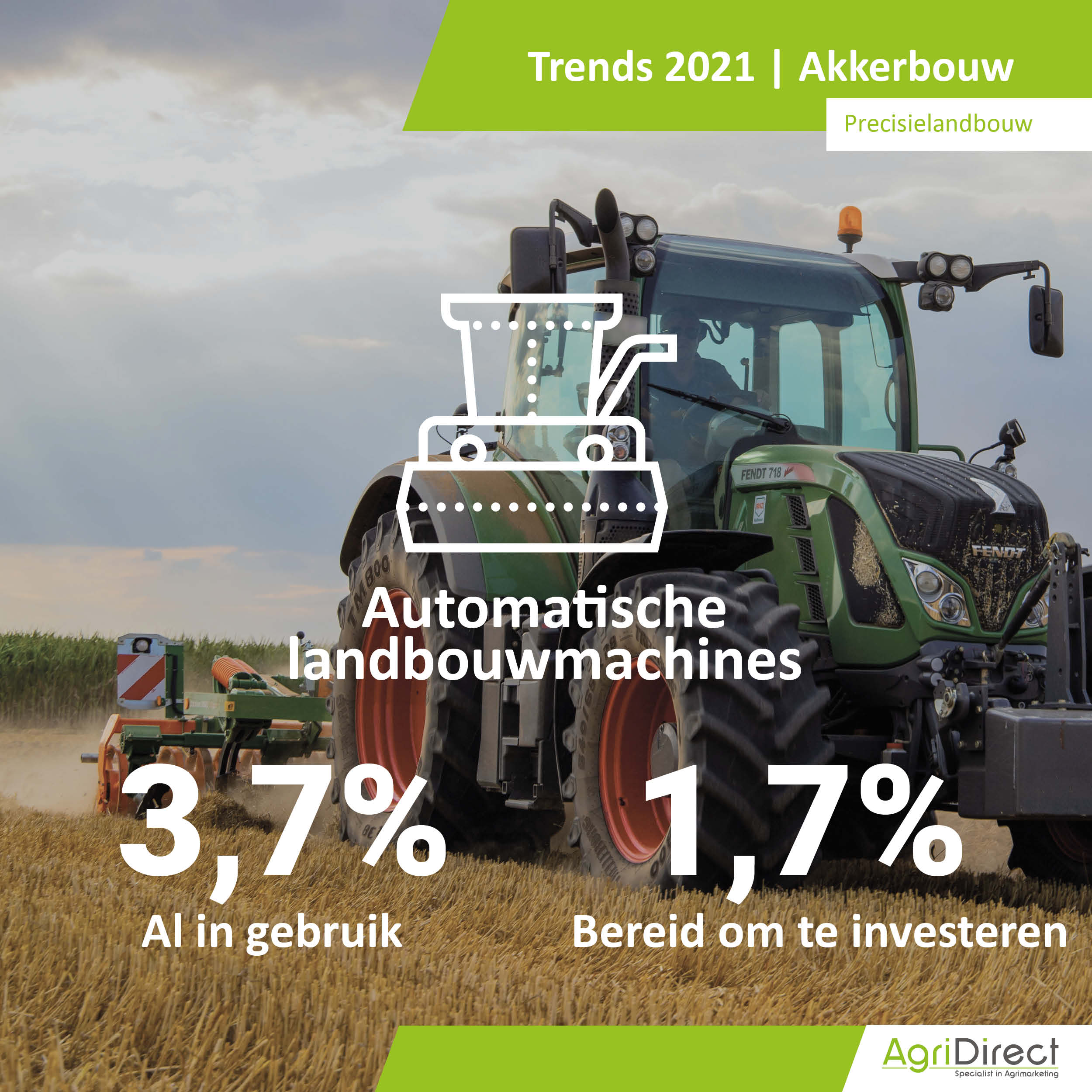 Wat zijn de populairste tractormerken in 2021 en willen akkerbouwers investeren in nieuwe machines? Zo ja, blijven ze hun merk trouw of switchen ze? Tijdens de actualisatieronde van AgriDirect hebben ruim 2000 Nederlandse akkerbouwbedrijven vragen beantwoord over investeringsplannen en merkenvoorkeur.